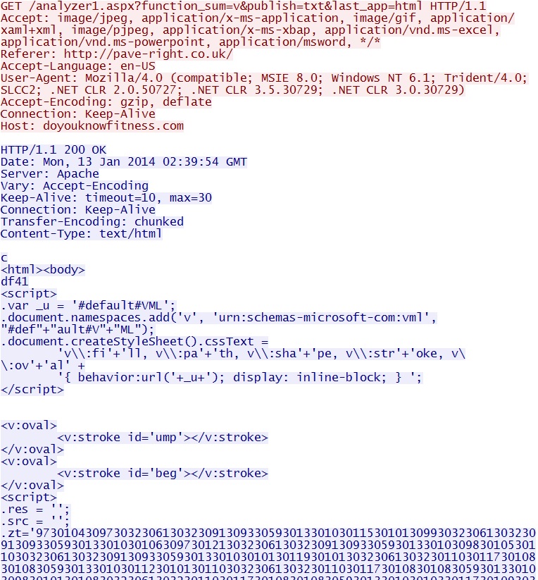 - 20:39:55 CST - 66.147.244[.]98:80 - doyouknowfitness[.]com - GET /analyzer1.aspx?function_sum=v&publish=txt&last_app=html