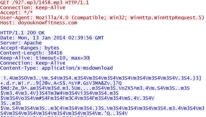 - 20:39:56 CST - 66.147.244[.]98:80 - doyouknowfitness[.]com - GET /927.mp3/1458.mp3