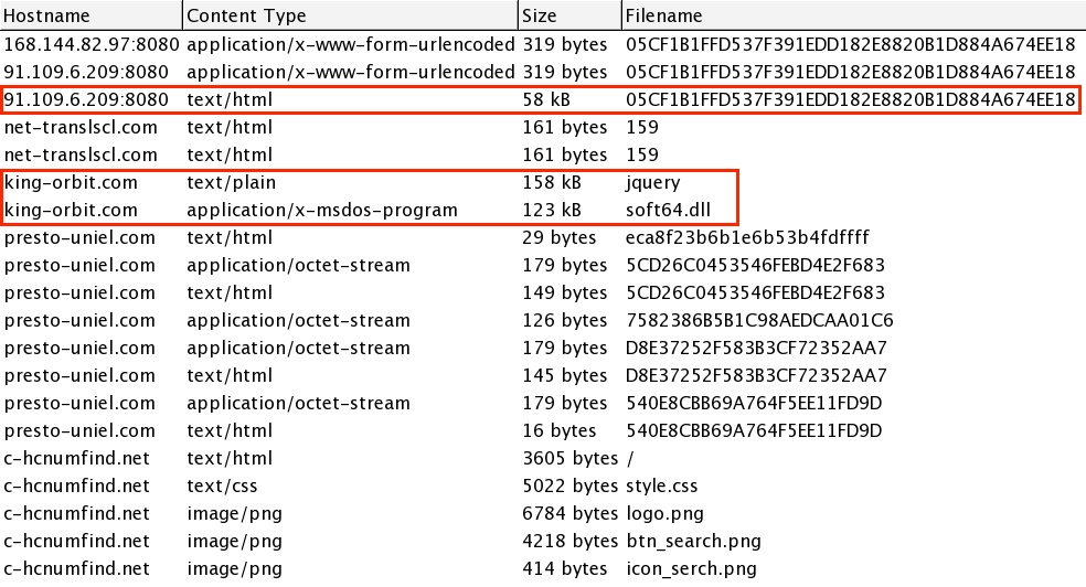 - 18:19:30 UTC - 109.163.239[.]226 port 80 - king-orbit[.]com - GET /soft64.dll