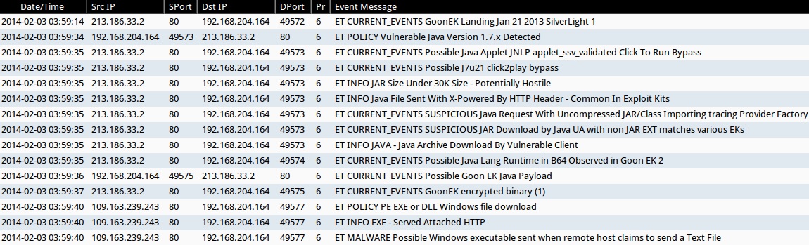 - 2014-02-03 03:59:36 UTC - 213.186.33[.]2:80 - ET CURRENT_EVENTS Possible Goon EK Java Payload