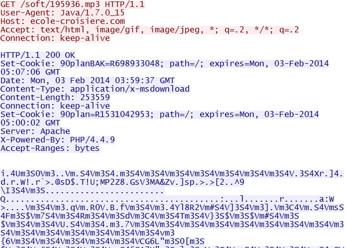 - 03:59:35 UTC - 213.186.33[.]2:80 - ecole-croisiere[.]com - GET /soft/xmlchecker.jar Java exploit