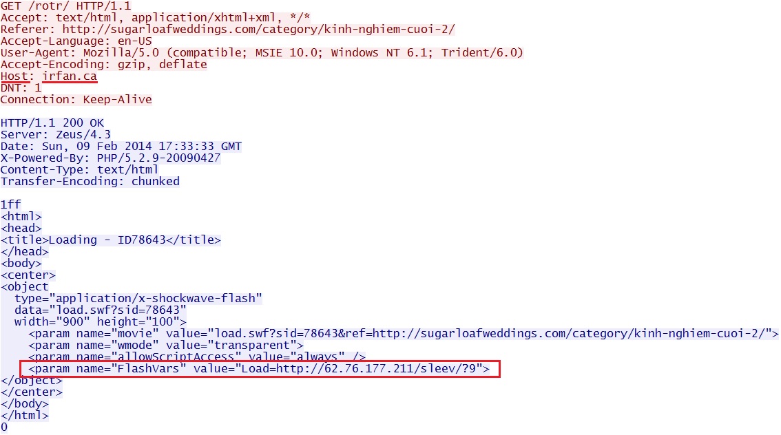 - 17:33:34 UTC - 64.26.174[.]76:80 - irfan[.]ca - GET /rotr/load.swf?sid=78643&ref=hxxp[:]//sugarloafweddings[.]com/category/kinh-nghiem-cuoi-2/