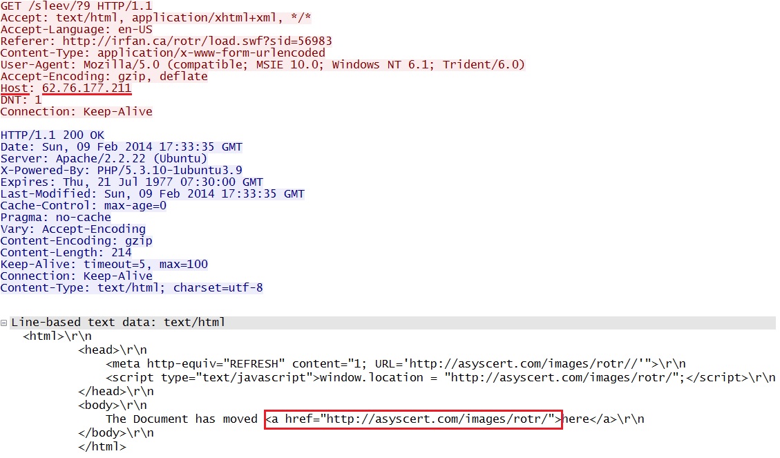 - 17:33:34 UTC - 64.26.174[.]76:80 - irfan[.]ca - GET /rotr/load.swf?sid=78643