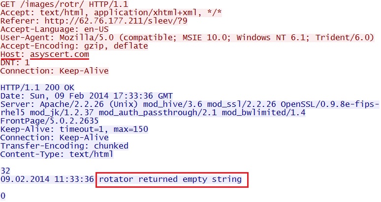 Third domain in the failed redirect chain - asyscert[.]com/images/rotr/