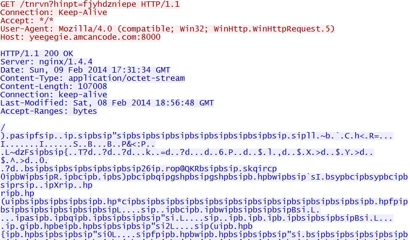 - 17:33:41 UTC - 212.83.149[.]239:8000 - yeegegie.amcancode[.]com:8000 - GET /tnrvn?hinpt=fjyhdzniepe