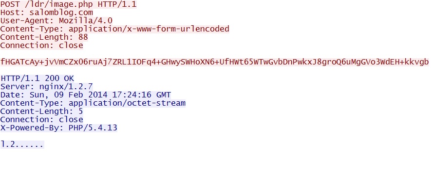 Post-infection callback traffic - salomblog[.]com/ldr/image.php