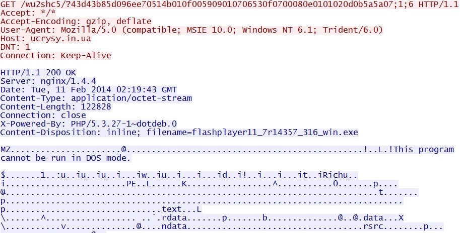 - 2014-02-11 02:19:51 UTC - 64.202.116[.]124:80 - ET CURRENT_EVENTS Fiesta - Payload - flashplayer11