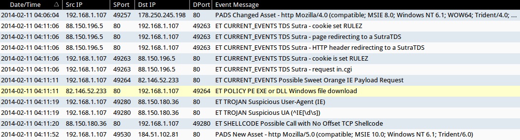 - 2014-02-11 04:11:11 UTC - 82.146.52[.]233:80 - ET CURRENT_EVENTS Possible Sweet Orange IE Payload Request