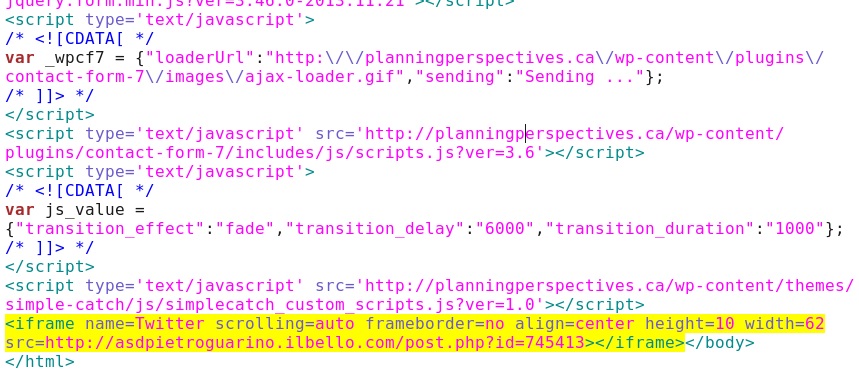 Embedded iframe in the infected web page - planningperspectives[.]ca/