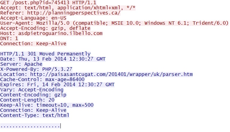 - 12:30:27 UTC - 217.160.26[.]3:80 - paisasantcugat[.]com - GET /201401/wrapper/uk/parser.htm