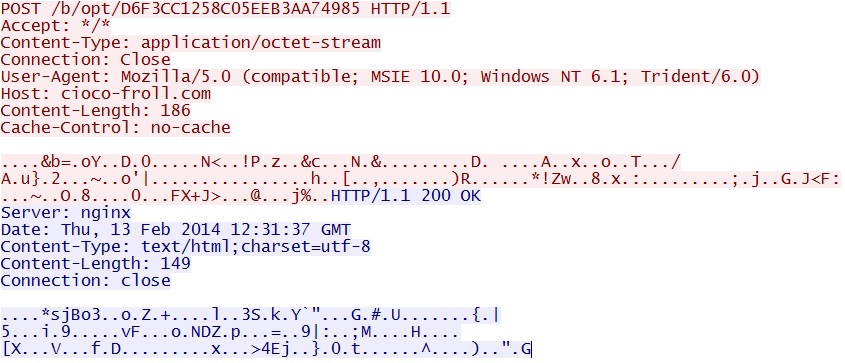 An example of the Asprox-style callback traffic - cioco-froll[.]com/b/opt/D6F3CC1258C05EEB3AA74985