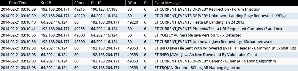 - 03:12:08 UTC - 64.202.116[.]124:80 - ET INFO Java File Sent With X-Powered By HTTP Header - Common In Exploit Kits