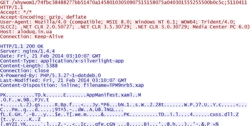 Fiesta EK delivers Silverlight exploit - aloduq[.]in[.]ua/xhywom1/?4fbc38488277bb51470a14580103050907515158075a040301555255500b0c5c;5110411