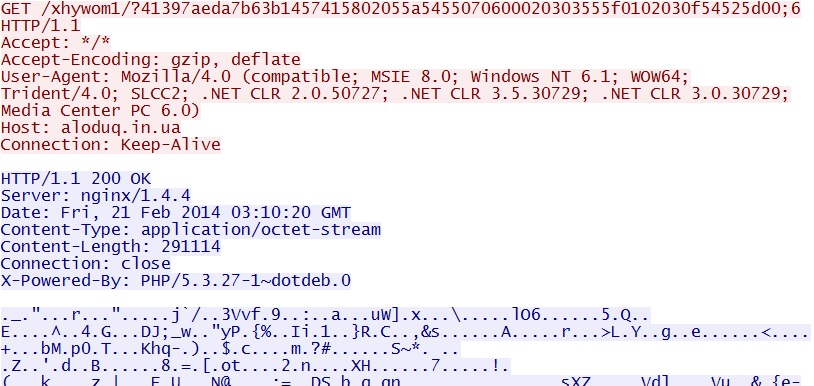 - 03:10:40 UTC - 64.202.116[.]124:80 - ET CURRENT_EVENTS Fiesta EK Landing Jan 24 2013
