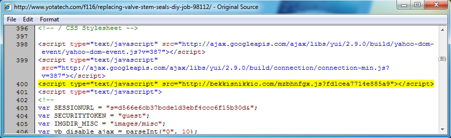 Embedded javascript from infected web page - www.yotatech[.]com/f116/replacing-valve-stem-seals-diy-job-98112/