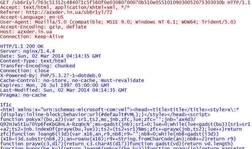 - 2014-03-02 04:15:31 UTC - 64.202.116[.]124:80 - ET CURRENT_EVENTS Fiesta EK Landing Jan 24 2013
