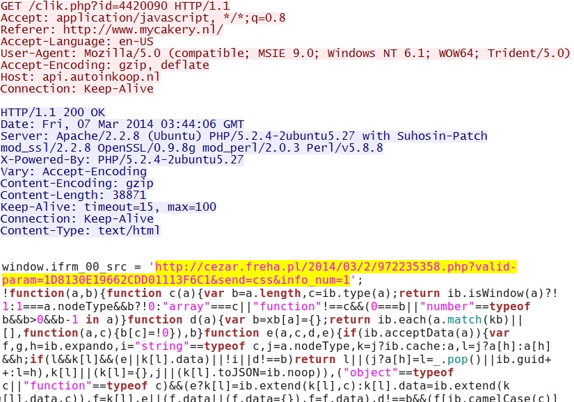 - 03:44:22 UTC - 74.52.61[.]194:80 - cezar.freha[.]pl - GET /2014/03/2/972235358.php?valid-param=1D8130E19662CDD01113F6C1&send=css&info_num=1