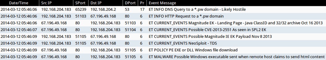 - 05:46:09 UTC - 67.196.49[.]168:80 - ET CURRENT_EVENTS Possible Magnitude IE EK Payload Nov 8 2013