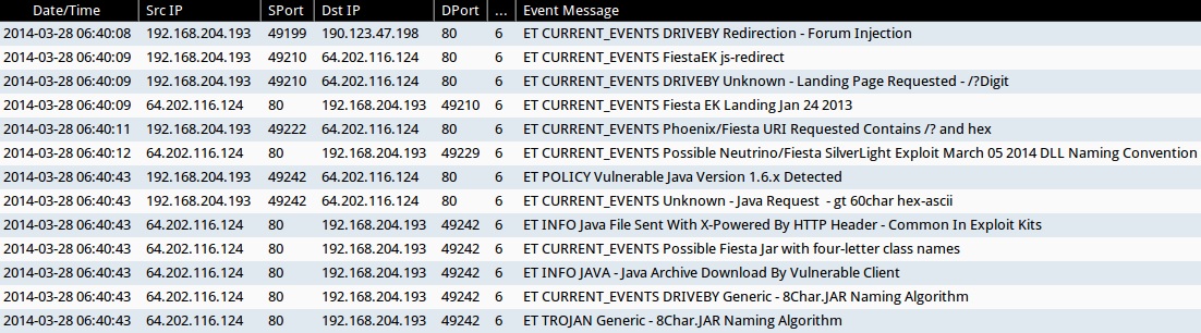 - 2014-03-28 06:40:43 UTC - 64.202.116[.]124:80 - ET INFO Java File Sent With X-Powered By HTTP Header - Common In Exploit Kits