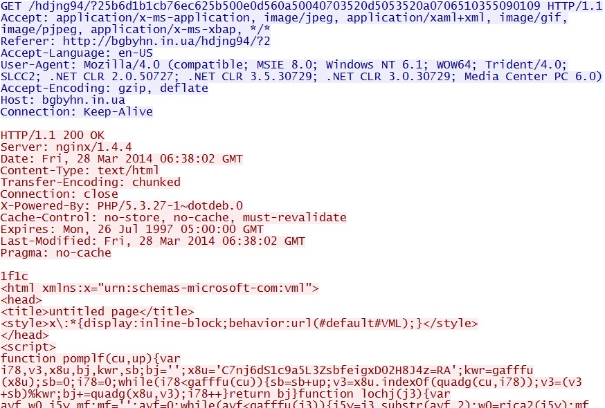 - 2014-03-28 06:40:09 UTC - 64.202.116[.]124:80 - ET CURRENT_EVENTS FiestaEK js-redirect