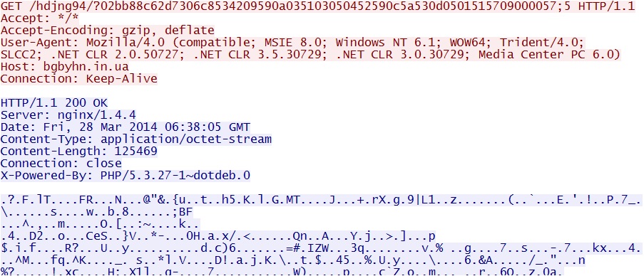 - 06:40:43 UTC - bgbyhn[.]in[.]ua - GET /hdjng94/?5998786b9c7a1ffe544b580305030457000f0903035a0659000a0a0d0600555a