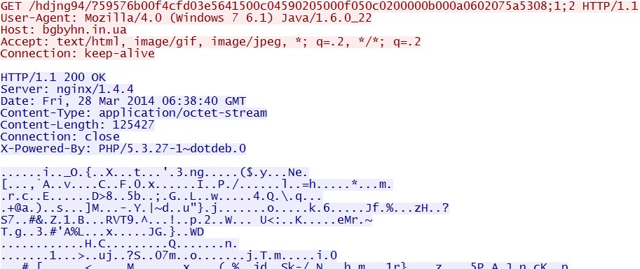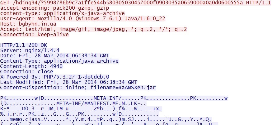 - 2014-03-28 06:40:43 UTC - 64.202.116[.]124:80 - ET CURRENT_EVENTS Possible Fiesta Jar with four-letter class names