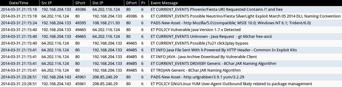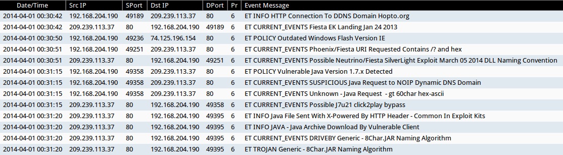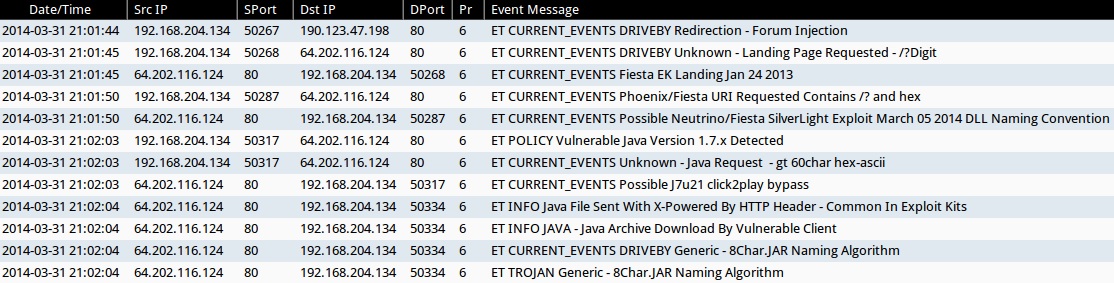 ALERTS FROM THE FIRST INFECTION ON 31 MAR 2014 (from Sguil on Security Onion)