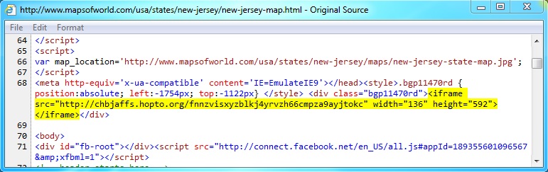 Embedded javascript or iframe from the infected web pages: