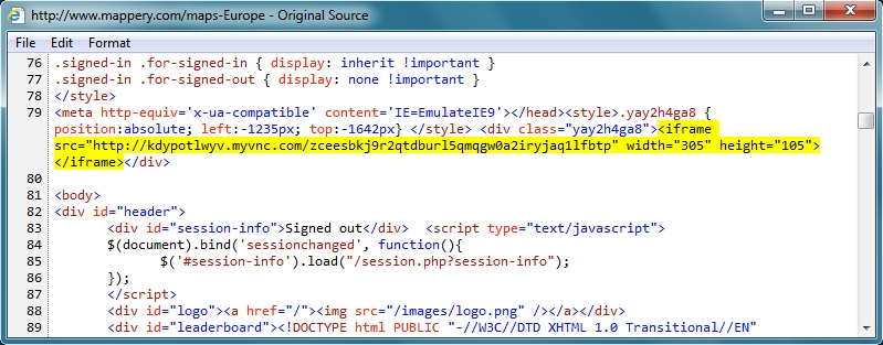 Embedded javascript in the infected web page that led to the Fiesta exploit kit: