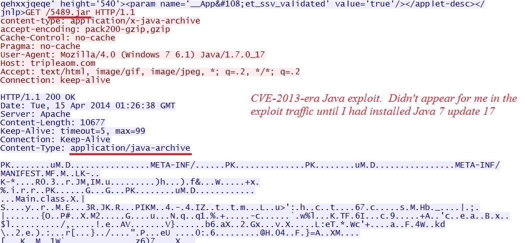 - 02:14:39 UTC - 94.73.146[.]30:80 - ebayedekparca[.]com - GET /2014/04/14/rar/javaeditor.html