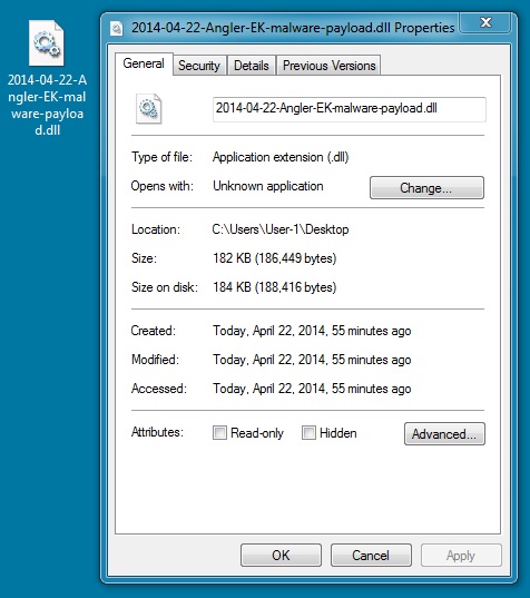 File name: 2014-04-22-Angler-EK-malware-payload.dll