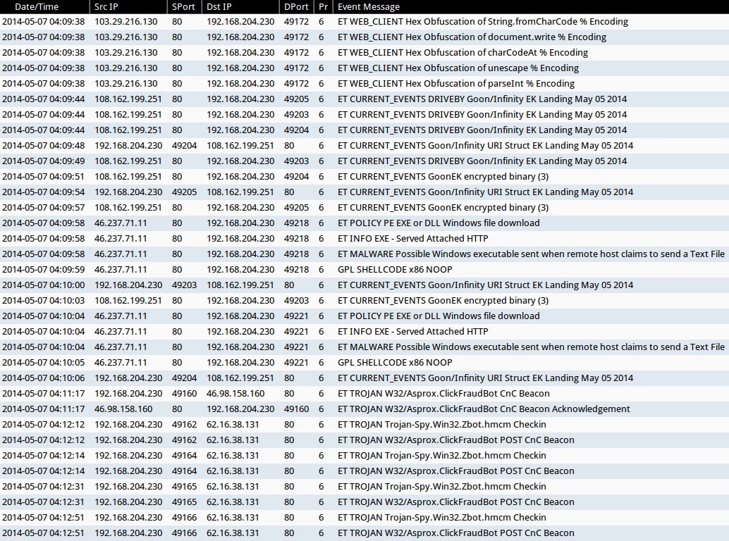 EmergingThreats has some new signatures on Goon/Infinity EK dated 05 May 2014 that are triggering on RIG Exploit Pack traffic: