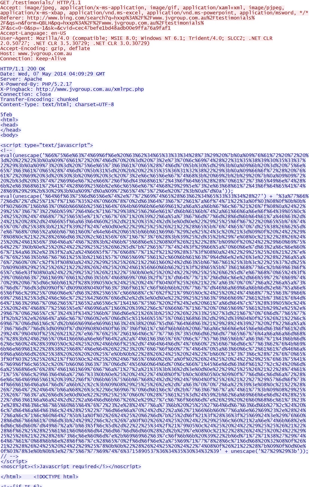 - 04:09:31 UTC - 103.29.216[.]130 - www.jvgroup[.]com[.]au - GET /testimonials/