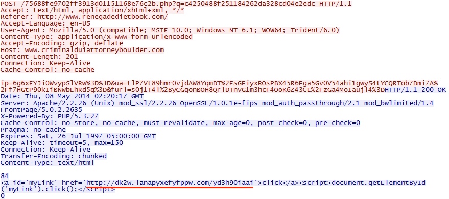 - 22:20:18 UTC - 209.59.163[.]234 - www.criminalduiattorneyboulder[.]com - POST /75688fe9702ff3913d01151168e76c2b.php?q=c4250488f251184262da328cd04e2edc