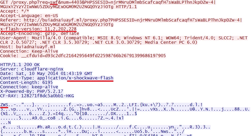 - 2014-05-10 01:43:19 UTC - 141.101.116[.]87:80 - ET POLICY Outdated Windows Flash Version IE