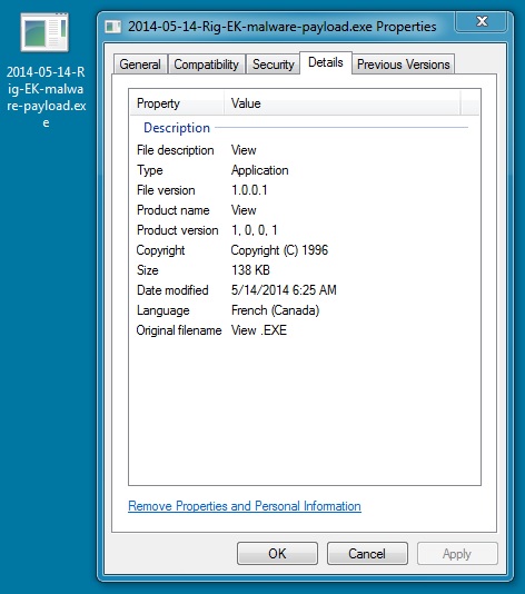 File name: 2014-05-14-Rig-EK-malware-payload.exe