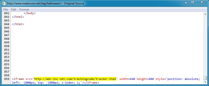 - 01:53:42 UTC - www.matercom[.]net - GET /tag/halloween/