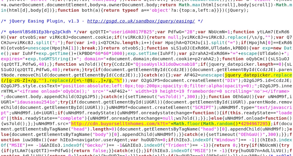 - The jquery_datepicker variable is retrived from hxxp[:]//cdn.buyorselltnhomes[.]com/k?t[string of numbers]