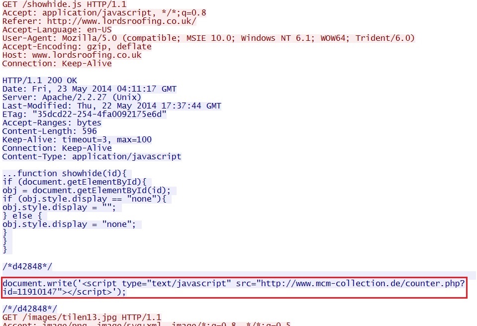 - 05:00:55 UTC - www.lordsroofing[.]co[.]uk - GET /showhide.js