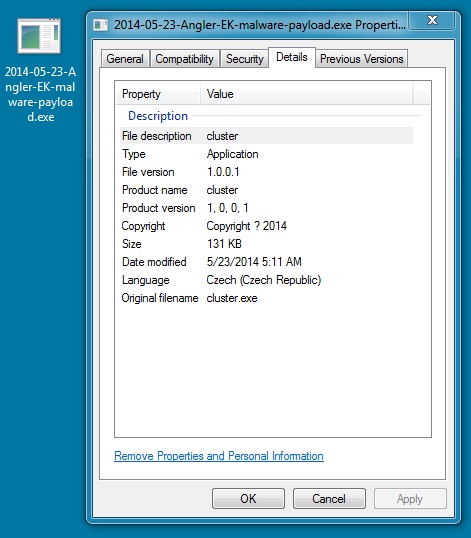 File name: 2014-05-23-Angler-EK-malware-payload.exe