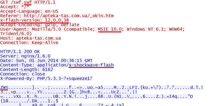 - 00:36:14 UTC - 89.184.75[.]186:80 - apteka-tas[.]com[.]ua - GET /swf.swf