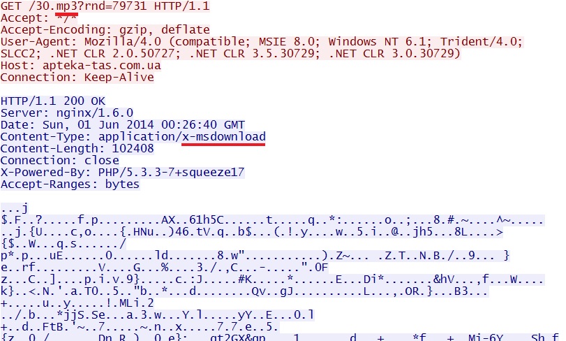 - 00:26:41 UTC - 89.184.75[.]186:80 - apteka-tas[.]com[.]ua - GET /30.mp3?rnd=93951