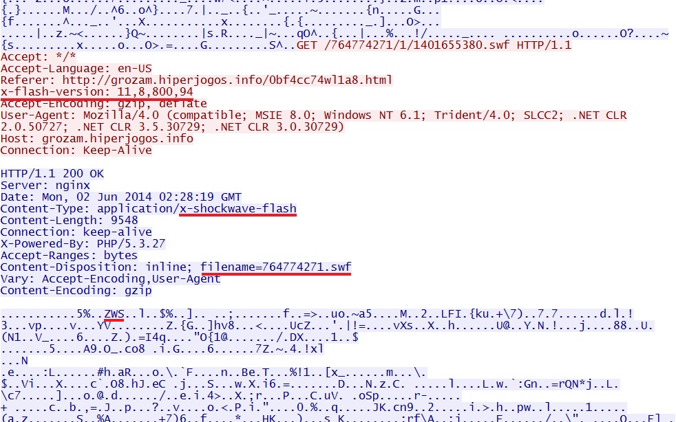 - 02:32:58 UTC - 93.189.40[.]43 - grozam.hiperjogos[.]info - GET /764774271/1/1401655380.swf