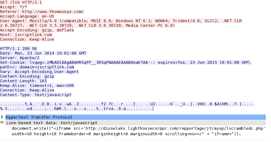 - 18:59:07 UTC - 173.203.236[.]17:80 - www.thomaseye[.]com - GET /