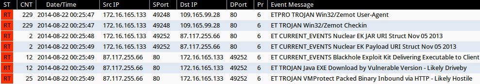 - 2014-08-22 00:25:48 UTC - 87.117.255[.]66:80 - ET CURRENT_EVENTS Nuclear EK JAR URI Struct Nov 05 2013 (sid:2017666)